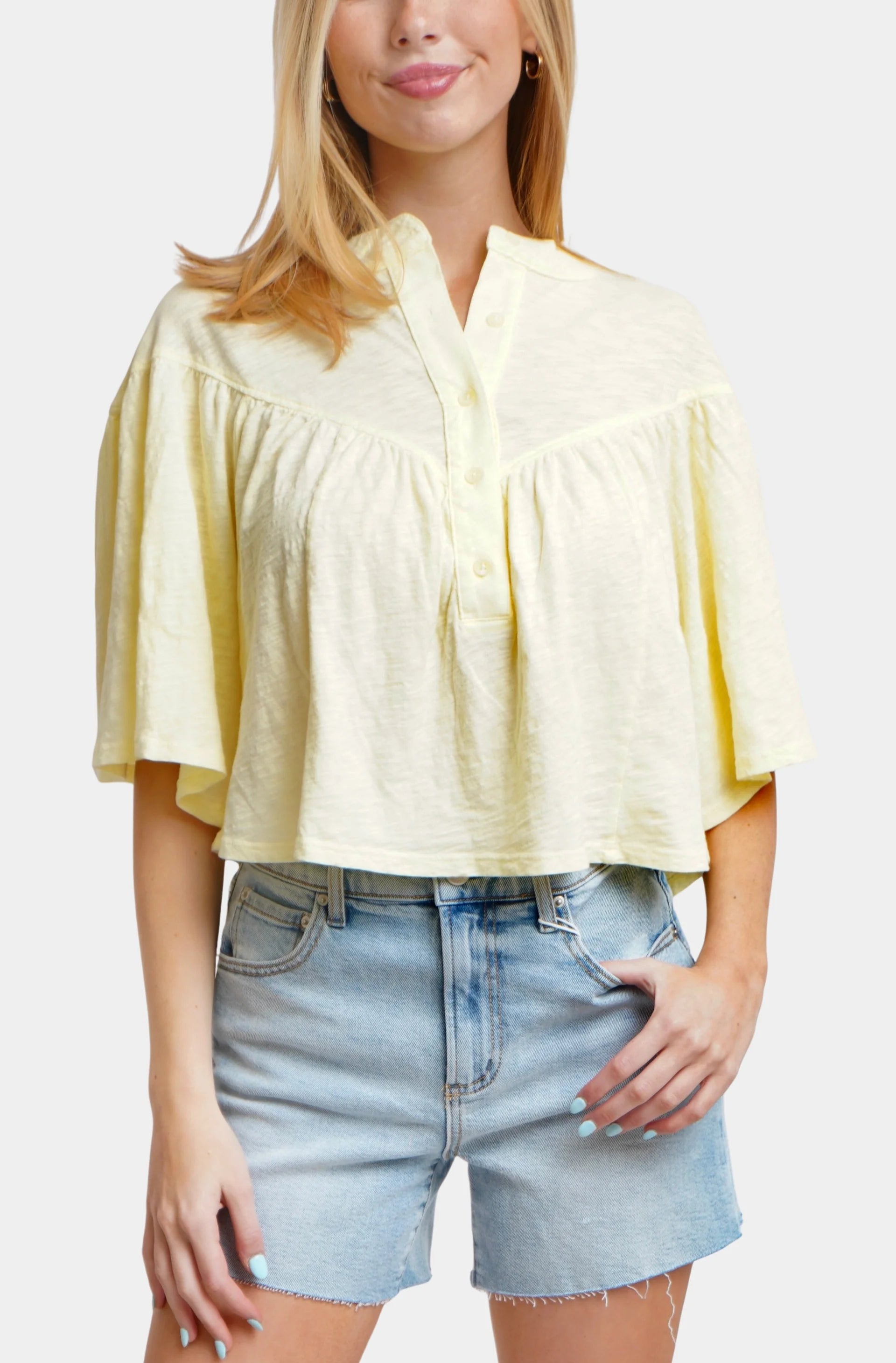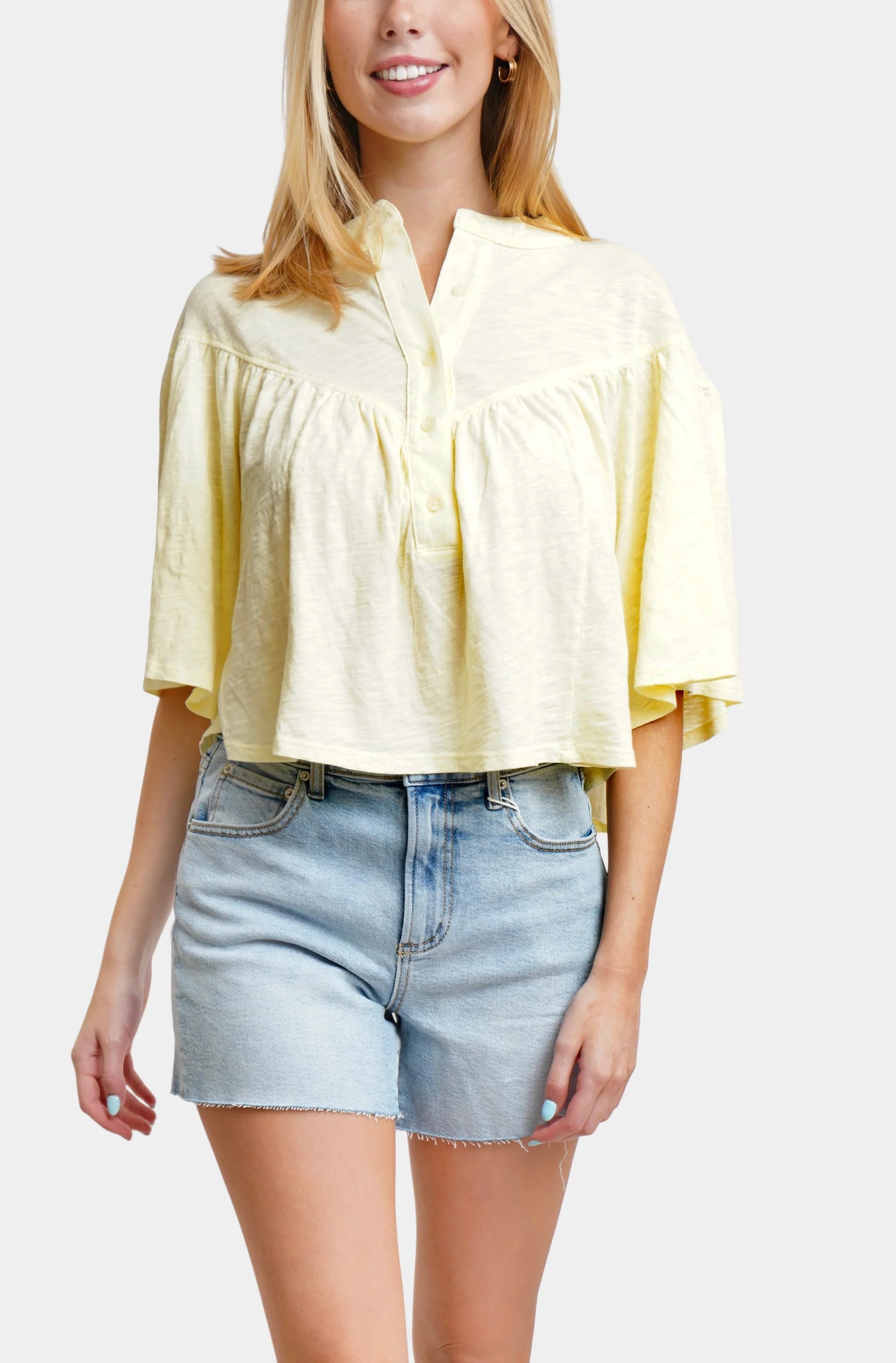 Bobi V Yoke Henley Blouse